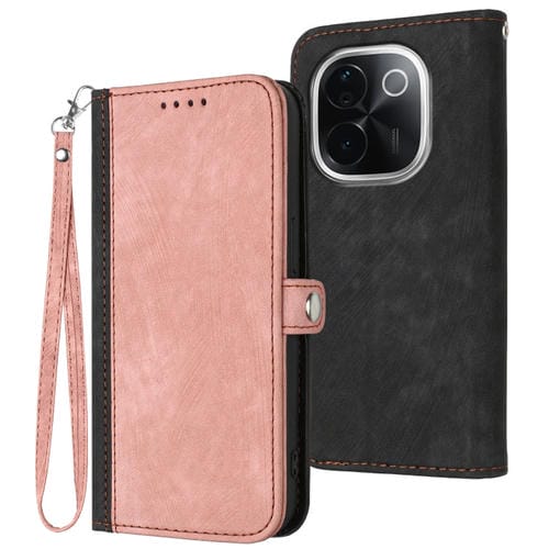Funda de Cuero para Teléfono con Correa de Mano y Hebilla Lateral Doble Plegable para Vivo Iqoo Z9S Pro/T3 Pro 5G (Rosa)