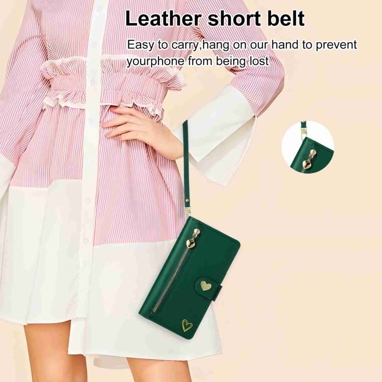 Funda de Cuero Pola Love para Google Pixel 7 Pro con Cremallera y Ranuras para Tarjetas (Verde Oscuro)