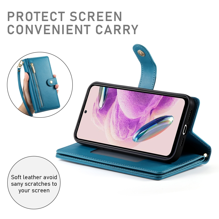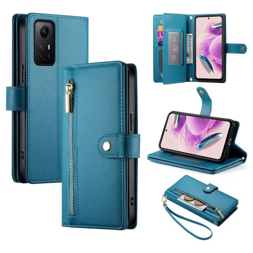 Funda de Cuero para Teléfono con Nueve Ranuras para Tarjetas y Cremallera para Redmi Note 12S 4G/Note 11 4G (Azul)