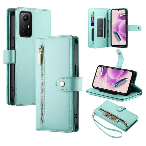 Funda de Cuero para Teléfono con Nueve Ranuras para Tarjetas y Cremallera para Redmi Note 12S 4G/Note 11 4G (Verde Menta)