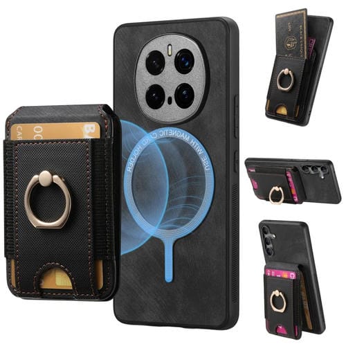 Funda de Cuero con Soporte Magnético Divisible para Honor Magic 7 Pro (Negro)