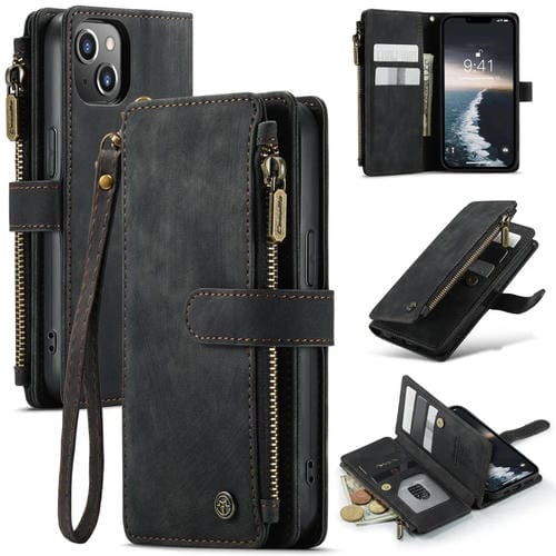Funda de Cuero para Teléfono Caseme C30 Multifuncional para iPhone 14 (Negro)