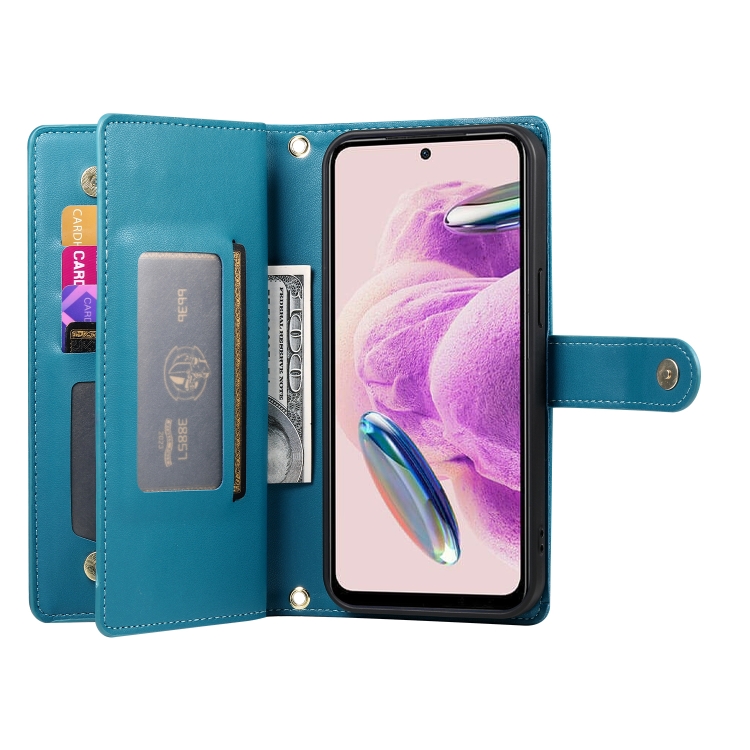 Funda de Cuero para Teléfono Redmi Note 11S 4G con Nueve Ranuras para Tarjetas y Cremallera (Azul)