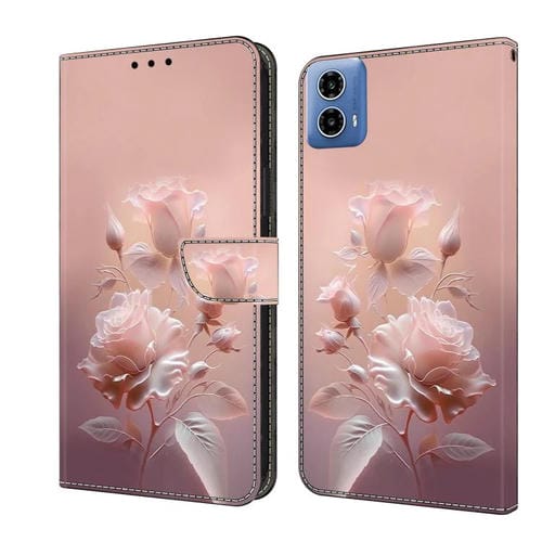 Funda de Cuero Pintada a Mano para Motorola Moto G34 (Flores de Cerámica)