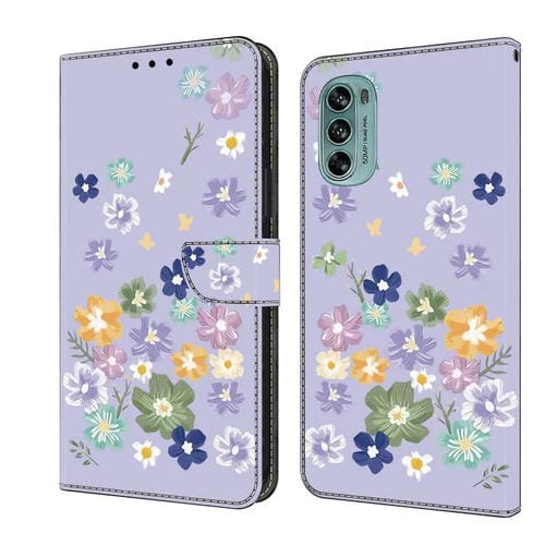 Funda de Cuero pintada a mano para Motorola Moto G62 5G (Floral Morado)