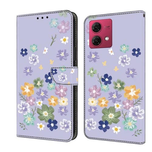 Funda de Cuero Pintada a Mano Motorola Moto G84 Protección Floral (Morado)