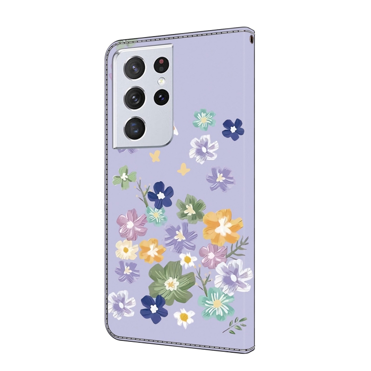 Funda de Cuero Samsung Galaxy S21 Ultra 5G Pintada a Mano Floral (Morado)