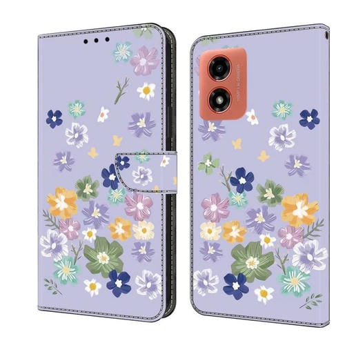 Funda de Cuero Pintada a Mano Motorola Moto G04 Protección Floral (Morado)