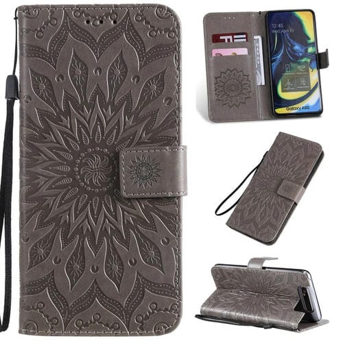 Funda Cuero Pu con Tapa Horizontal para Galaxy A80 con Soporte Ranuras Tarjetas Billetera y Cordón (Gris)