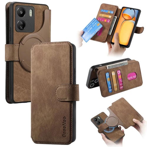 Funda Neo Magsafe Rfid Antirrobo de Cuero Retro para Xiaomi Poco M6 (Marrón)