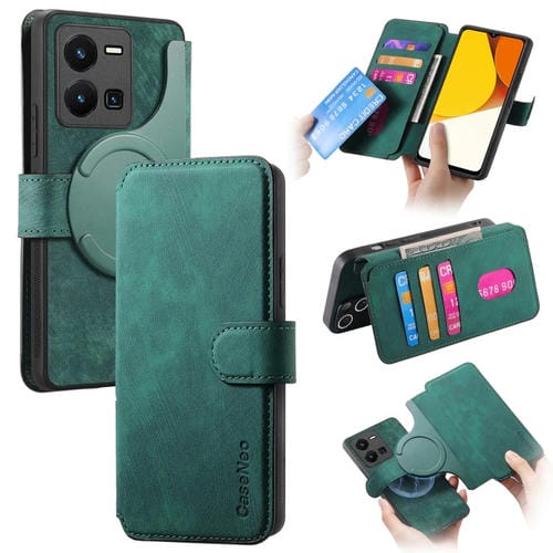Funda de Cuero Retro Antirrobo con Tecnología Rfid para Vivo Y35 5G Case Neo Magsafe (Verde)