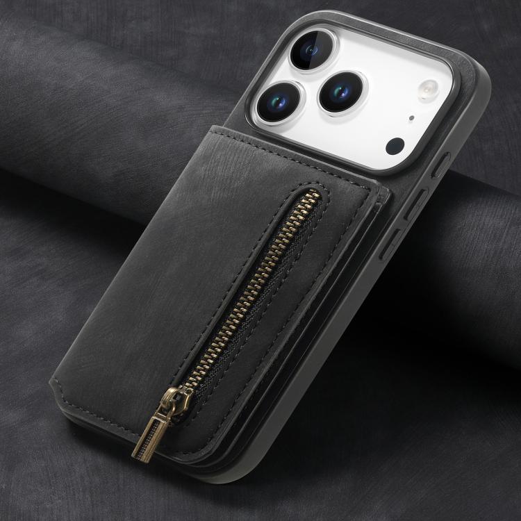 Funda de cuero retro con cremallera para iPhone 17 Pro (negra)