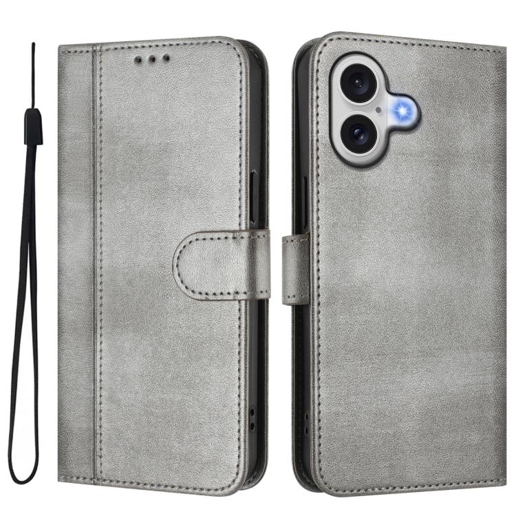 Funda de cuero retro con hebilla y empalme de líneas para iPhone 17 (gris)