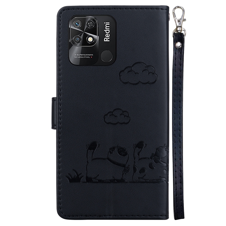Funda de Cuero Rfid con Diseño de Gatos para Redmi 10C (Negra)