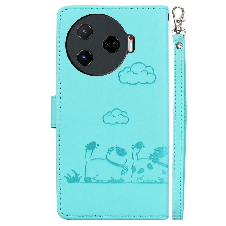 Funda de Cuero Rfid para Tecno Camon 30 Pro 5G con Diseño de Gatos (Verde)