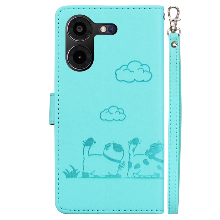 Funda de Cuero Rfid para Tecno Pova 5 Pro con Diseño de Gatos (Verde)