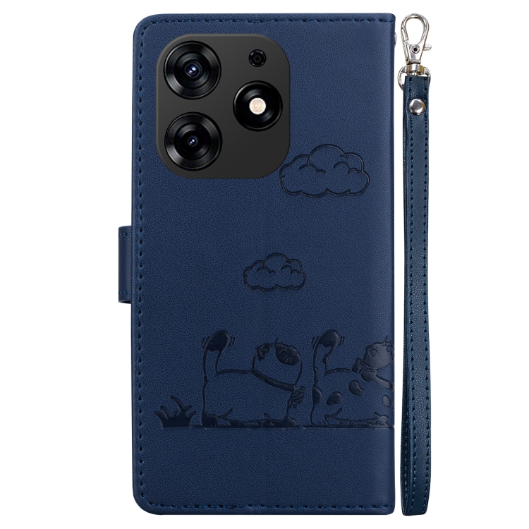 Funda de Cuero Rfid para Tecno Spark 10 Pro con Diseño de Gatos (Azul)