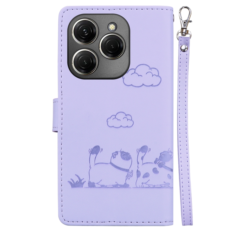 Funda de Cuero Rfid para Tecno Spark 20 Pro con Diseño de Gatos (Morado)