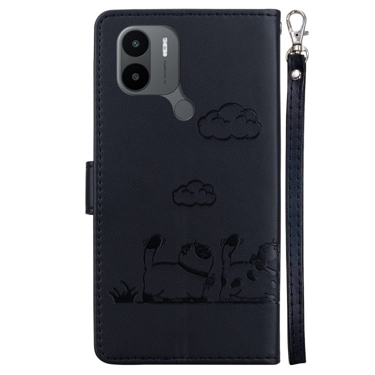Funda de Cuero Rfid con Diseño de Gatos para Xiaomi Poco C50 (Negra)