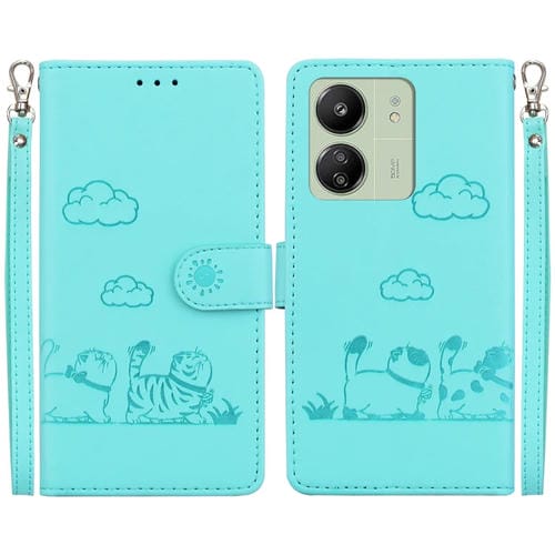 Funda de Cuero Rfid con Diseño de Gatos para Xiaomi Poco C65 4G (Verde)