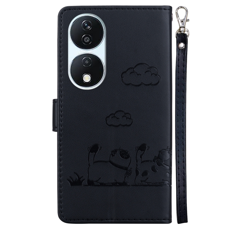 Funda de Cuero Rfid con Diseño de Gatos para Honor X7B y Play 50 Plus (Negra)