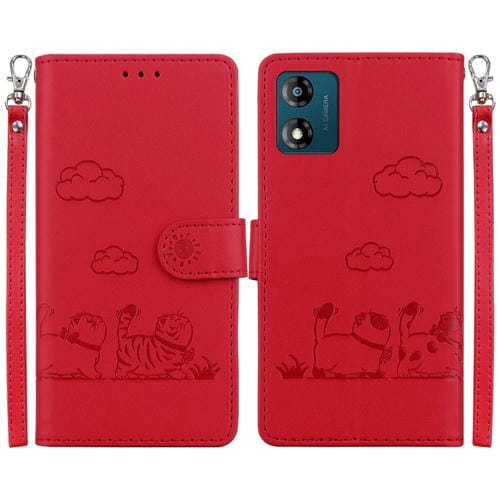 Funda de Cuero Rfid para Motorola Moto E13 con Diseño de Gatos (Rojo)