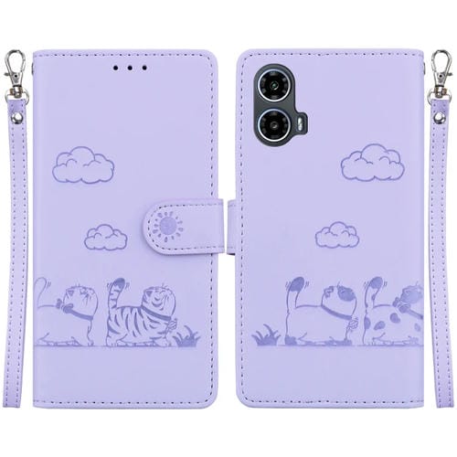 Funda de Cuero Rfid para Motorola Moto G34 5G con Diseño de Gatos (Morado)