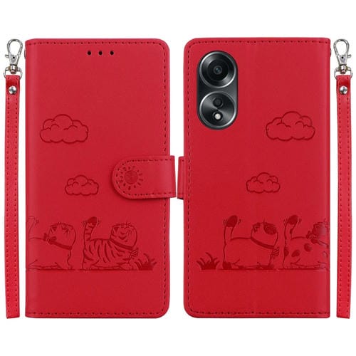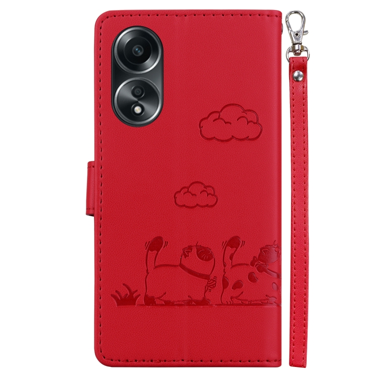 Funda de Cuero Rfid con Diseño de Gatos para Oppo A58 4G (Roja)