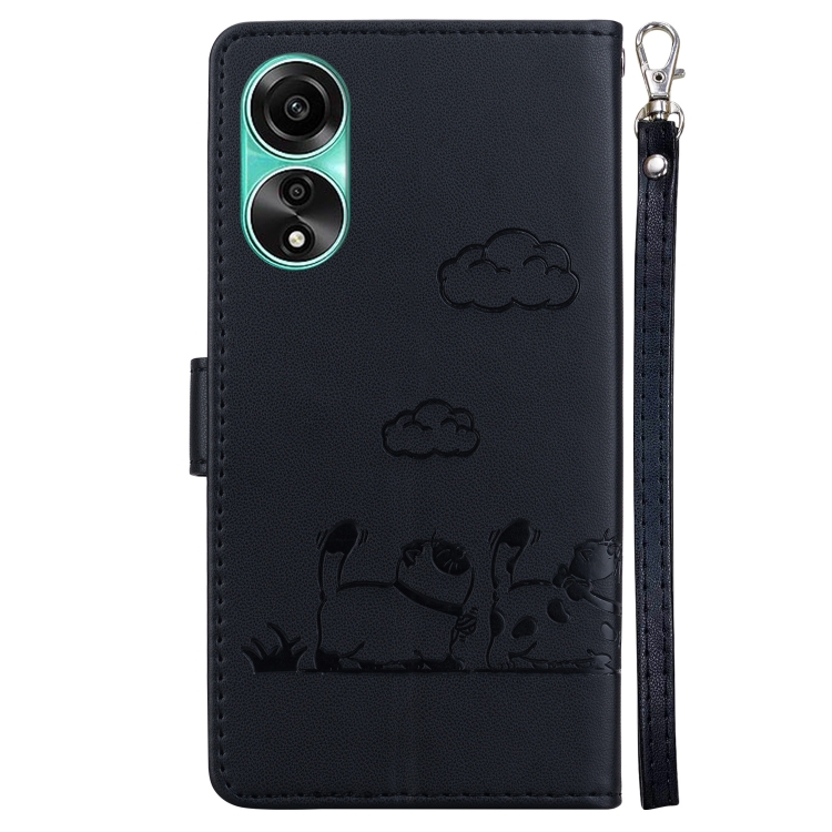Funda de Cuero Rfid con Diseño de Gatos para Oppo A78 4G (Negra)