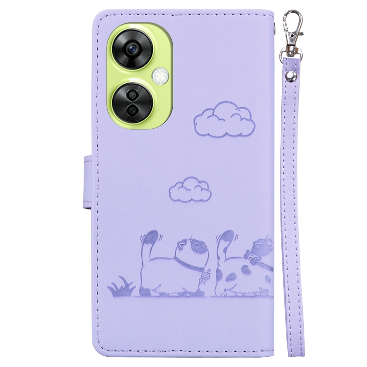 Funda de Cuero Rfid con Diseño de Gatos para Oppo K11X (Morada)