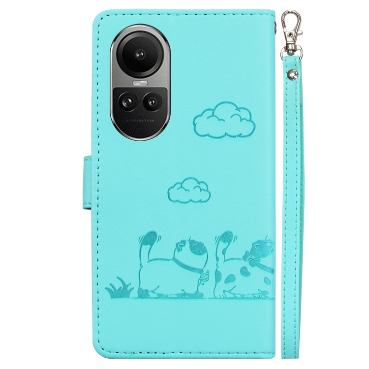 Funda de Cuero Rfid con Diseño de Gatos para Oppo Reno10 5G (Verde)