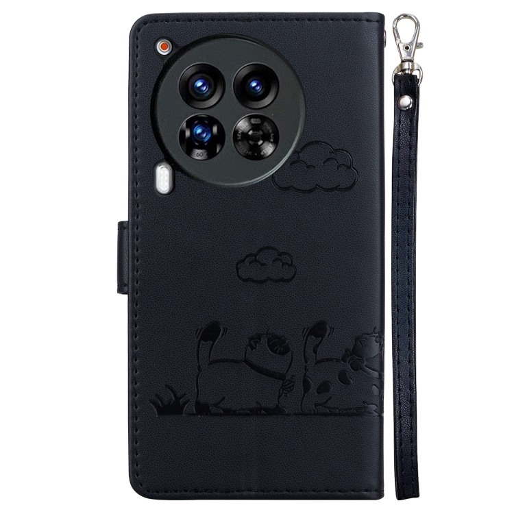 Funda de Cuero Rfid para Tecno Camon 30 Premier 5G con Diseño de Gatos (Negra)