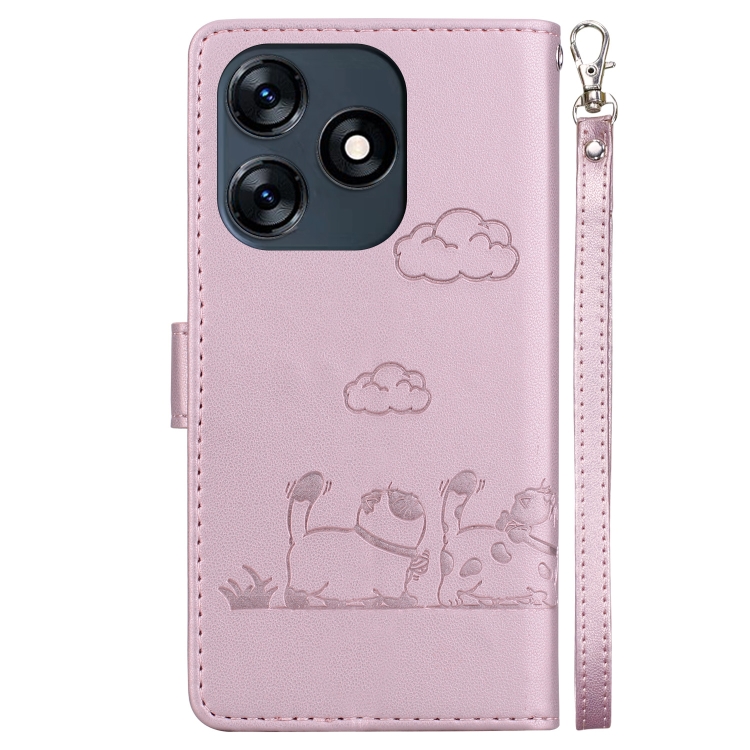 Funda de Cuero Rfid para Tecno Spark 10 4G y Spark 10C con Diseño de Gatos (Oro Rosa)