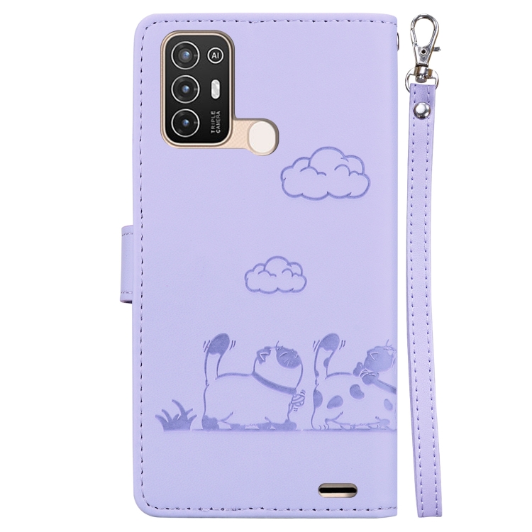 Funda de Cuero Rfid para ZTE Blade A52 con Diseño de Gatos (Morado)