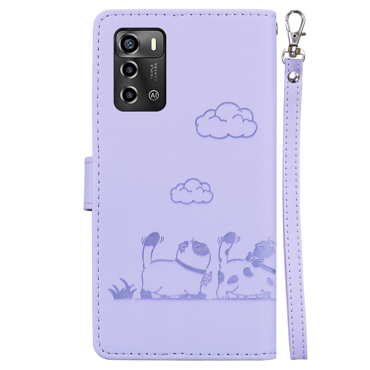 Funda de Cuero Rfid para ZTE Blade A72/V40 Vita con Diseño de Gatos (Morado)