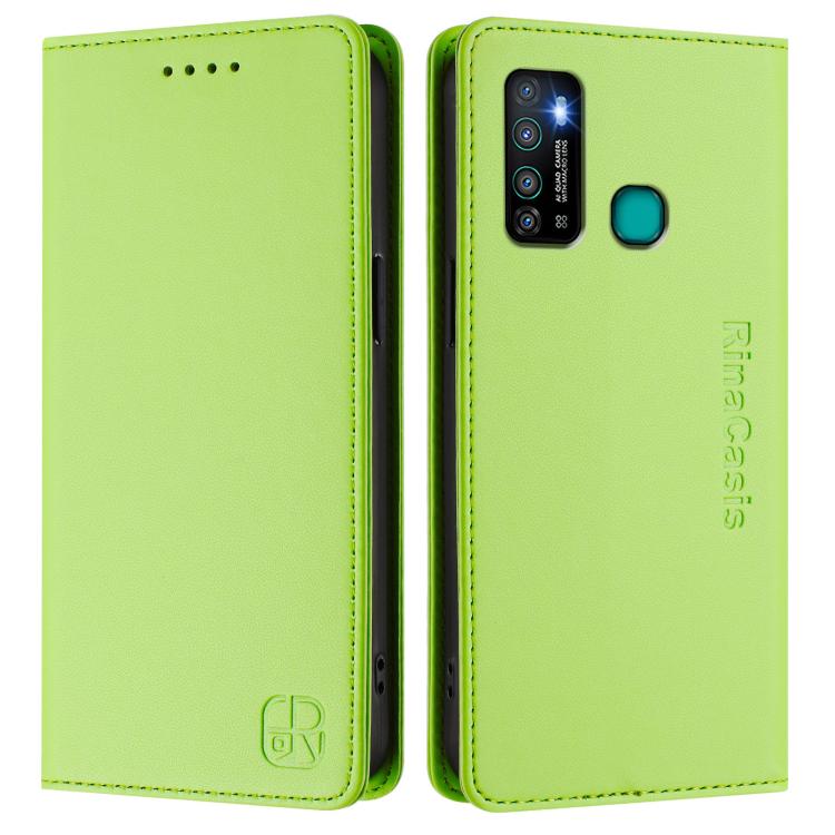 Funda de Cuero Rfid para Tecno Camon 15/15 Air Rc01 con Doble Pliegue y Succión Magnética (Verde Hierba)