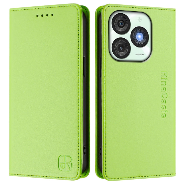 Funda de Cuero Rfid para Teléfono Itel A50 Rc01 con Doble Pliegue y Succión Magnética (Verde Hierba)