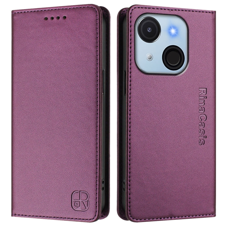 Funda de Cuero Rfid con Doble Pliegue y Succión Magnética para Itel A50C Rc01 (Violeta)