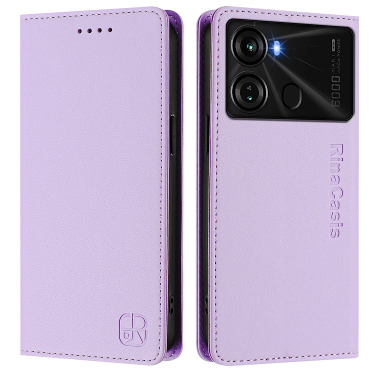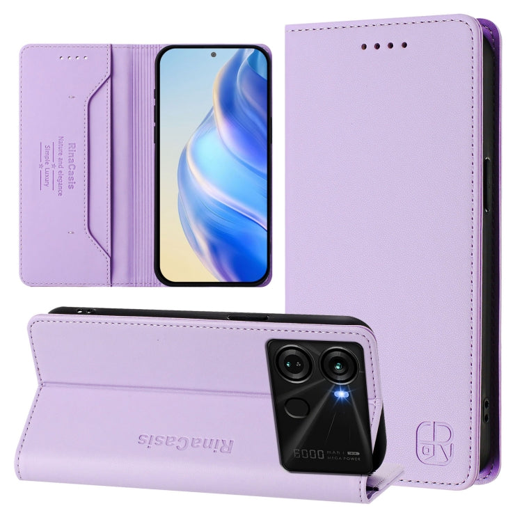 Funda de Cuero Rfid con Doble Pliegue y Succión Magnética para Teléfono Itel P40 Rc01 (Morado Claro)
