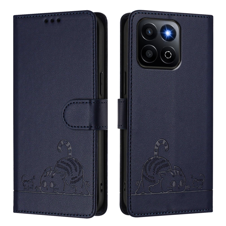 Funda de Cuero RFID para Honor 200 Smart 5G Global con Estampado de Rata y Gato y Cordón (Azul)