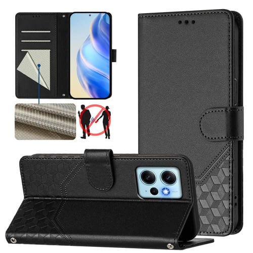 Funda de Cuero Rfid con Relieve de Panal Global para Redmi Note 12 4G (Negra)