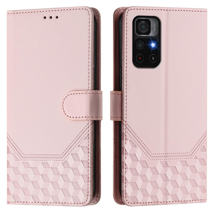 Funda de Cuero Rfid con Relieve de Panal para Redmi Note 11S 5G (Rosa)