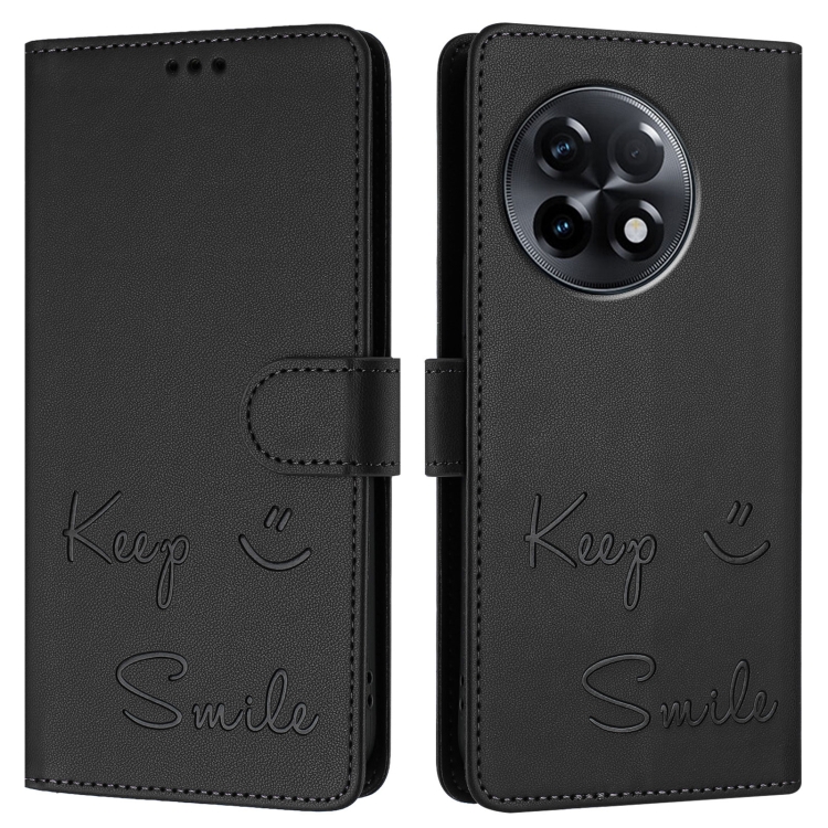 Funda de Cuero Rfid con Relieve Sonrisa Global para OnePlus 11R 5G (Negra)