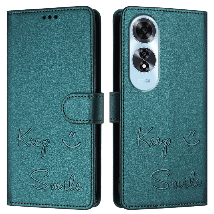 Funda de Cuero Rfid con Relieve de Sonrisa Global para Oppo A60 4G (Verde Pavo Real)