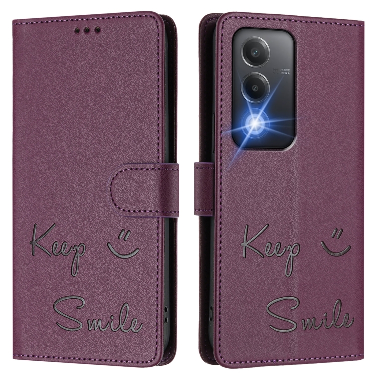 Funda de Cuero Rfid con Relieve de Sonrisa Global para Oppo K12X 5G (Violeta)