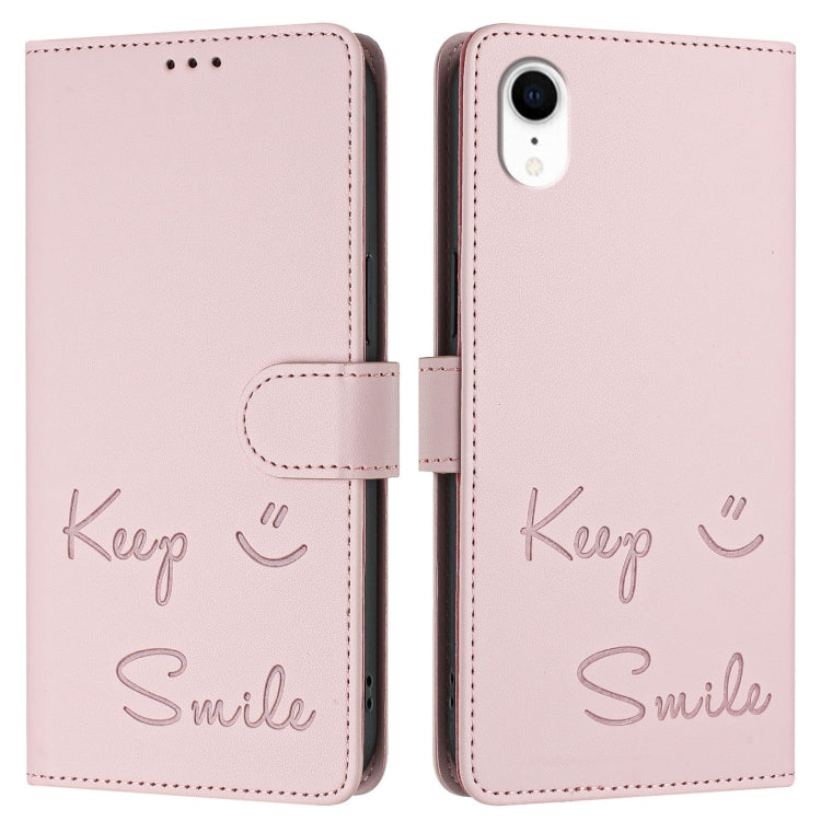Funda de Cuero Rfid con Relieve de Sonrisa para iPhone Xr (Rosa)