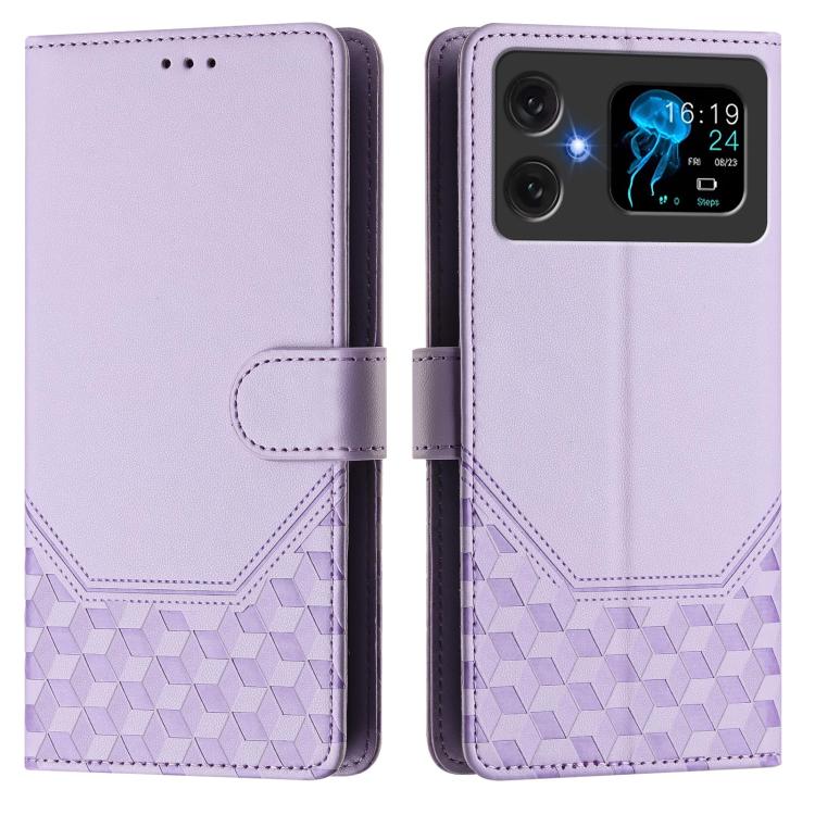 Funda de Cuero Rfid con Relieve en Panal para Cubot A20 (Morado Claro)