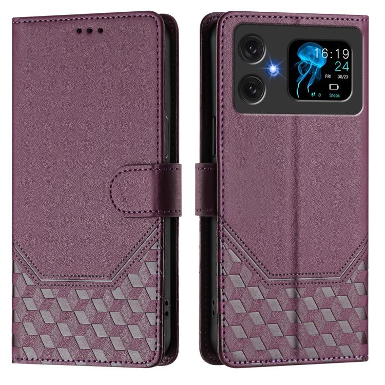 Funda de Cuero Rfid con Relieve en Panal para Cubot A20 (Violeta)