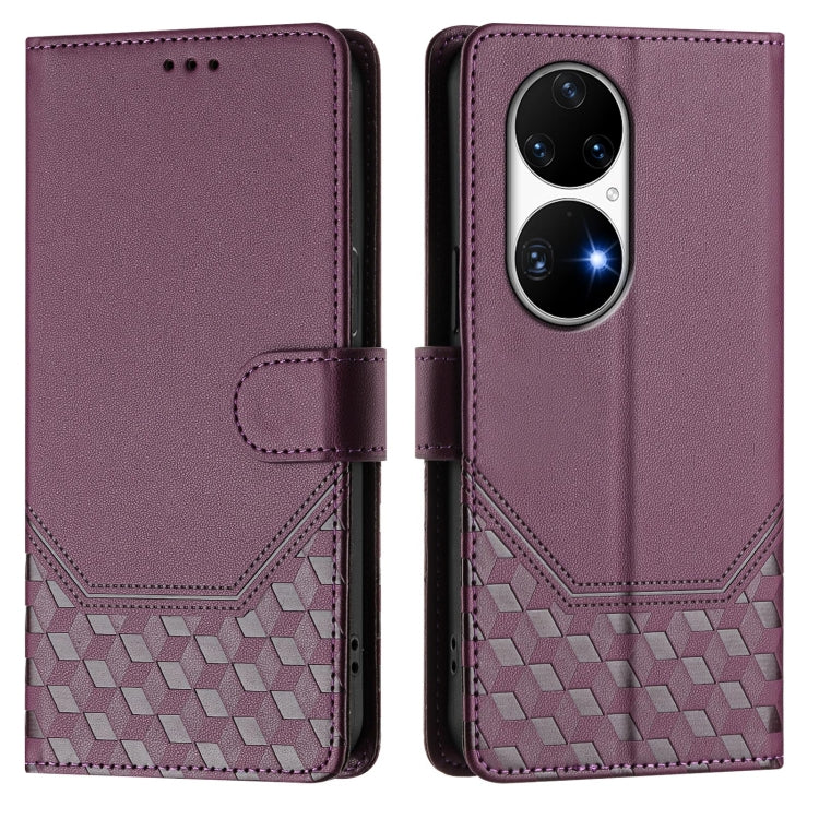 Funda de Cuero Rfid con Relieve en Panal para Huawei P50 Pro (Violeta)