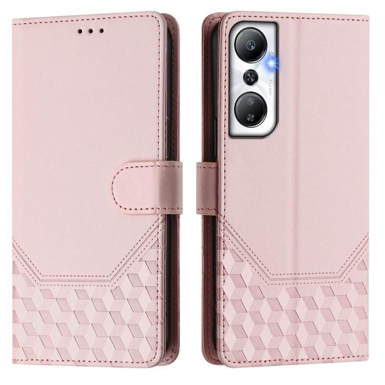 Funda de Cuero Rfid con Relieve en Panal para Infinix Hot 20 4G (Rosa)